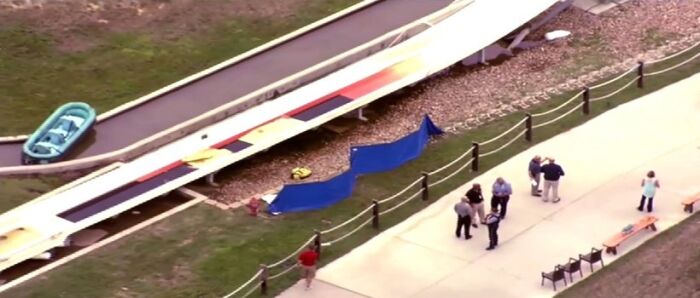The 168-foot-high water slide is the tallest in the world and can reach speeds up to 70 miles per hour. The speed and elevation of this ride caused Caleb Schwab’s raft fly into the air. He struck a metal pole and suffered a fatal neck injury.