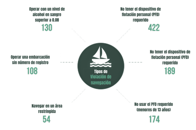 Con esto en mente, le instamos a que preste especial atención a estas 10 violaciones comunes de la Ley de Registro y Seguridad de Embarcaciones de Illinois. Tome las medidas necesarias para evitar cometer estas infracciones y enfrentar sus consecuencias, que van más allá de sanciones económicas y pueden incluir accidentes de navegación, lesiones e incluso muertes.