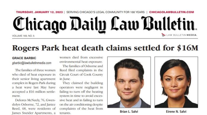 Chicago – The families of the three women who died of heat exposure in their senior living apartment complex in Rogers Park during a heat wave last May have accepted a $16 million settlement.