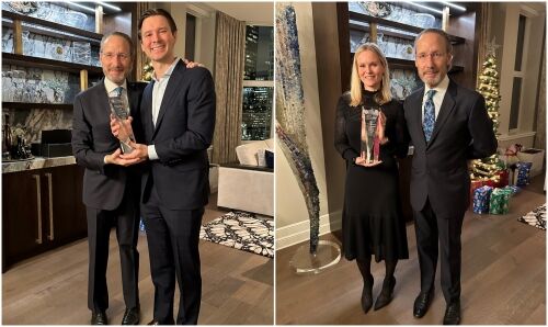 CHICAGO (December 16, 2022) – Salvi, Schostok & Pritchard announced the creation of two awards named in honor of late attorneys from the firm. The firm announced its first winners Dec. 8. Patrick A. Salvi II, a Chicago managing partner, earned the Michael P. Schostok Excellence Award, and associate Heidi L. Wickstrom received the Elizabeth R. Olszewski Commitment Award.