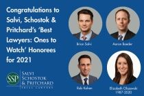 CHICAGO (August 20, 2020) – Salvi, Schostok & Pritchard, P.C. is pleased to announce that four of the firm’s attorneys have been included in the 2021 Edition of Best Lawyers: Ones to Watch. Attorney Elizabeth Olszewski, who passed away in February of 2020, was among the attorneys who received the prestigious…