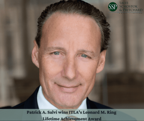 CHICAGO (December 3, 2021) – Patrick A. Salvi, Founder and Managing Equity Partner of the Law Offices of Salvi, Schostok & Pritchard, P.C., was presented with the Illinois Trial Lawyers Association (ITLA) Leonard M. Ring Lifetime Achievement Award on Thursday, December 2 at the ITLA midyear recognition dinner at the JW Marriott Chicago.